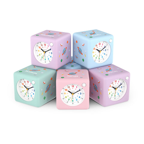- Lautloser Kinderwecker in Blau, Türkis, Violett und Rosa für Kinder