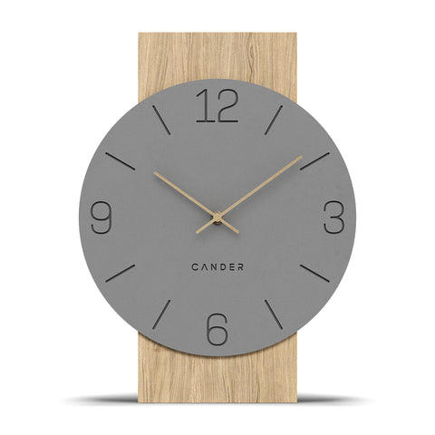 Die Wanduhr mit grauem Zifferblatt und Holzzeigern ist eine wunderschöne und praktische Ergänzung für jeden Raum. Die klassische Farbkombination aus Grau und Holz fügt sich nahtlos in jedes Designkonzept ein und sorgt für eine zeitlose Ästhetik. Die Zeiger aus Massivholz (Eiche) und die gefrästen Ziffern verleihen der Uhr einen ganz besonderen Touch. Die Uhr misst einen Durchmesser von 30 cm, eine Länge von 41 cm und hat eine Dicke von 4 cm. Die Zeiger werden von einem nahezu lautlosen Mechanismus angetrieben, weshalb sie sich für alle Räume im Haus eignet. Die benötigte AA-Batterie ist nicht im Lieferumfang enthalten.