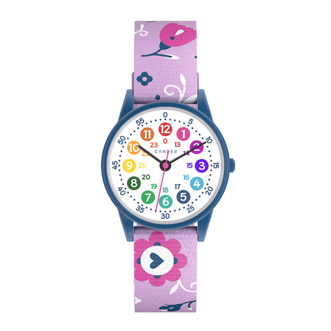 Girls watch out! This beautiful wristwatch not only convinces with its beautiful pink flower motif, but also offers the best wearing comfort. The colorful learning dial scores with the 24-hour time format and the clear minute division. The children's watch is waterproof up to 3 ATM, which is why washing hands and splashing water do not cause any problems. The watch is equipped with a breathable fabric strap that is particularly comfortable on the skin and is durable and easy to care for.