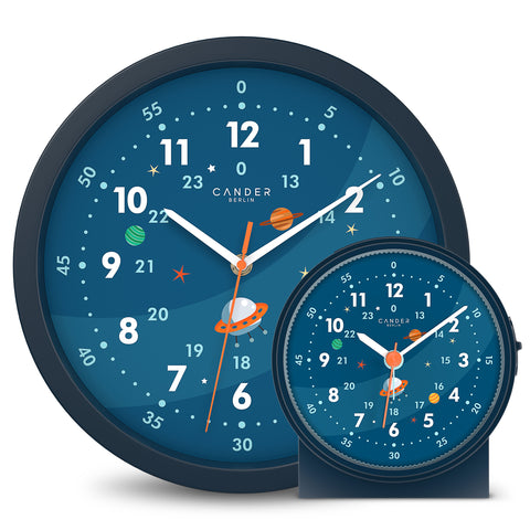 MNU 1230 A Kinderwanduhr und MNU 1209 A Wecker Weltraum